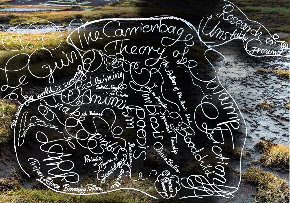 RESEARCH ON UNSTABLE GROUND versammelt Parabiologinnen, Schamaninnen und Geologen, Aliens, Künstlerinnen und Terraformer, Sumpfmonster und andere Spezialistinnen der Swampiness für ein gemeinsames Zusammentreffen im Sumpf und erforscht den Sumpf als monströse Landschaft des Anthropozäns sowie das LARP als kollektive Sympoiesis.