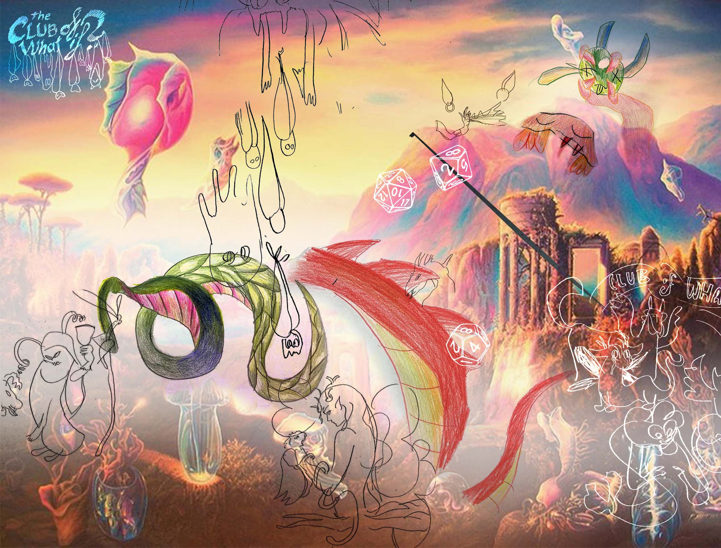 Der Club of What If ist eine Gesellschaft für analoge Role Play Games und Live Action Role Play, kollektives Fantasieren und Worldbuilding. Sie sucht nach Narrationen jenseits bestehender Fantasy-Stereotypen, nach verwandten Formen spielerischer Imagination in anderen Bereichen wie z.B. in Choreographie, und arbeitet an der Zersetzung der Grenze von Spiel und Nicht-Spiel durch Okkultes und Magie.