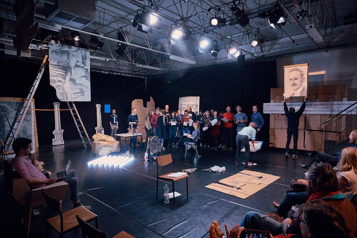 This layers allow us to speak about political matters and connect disparate things to complex correlations without false representation. But now the projectmakers, together with the audience have to ask themselves the question: How do we get out of this situation, out of the project making and the austerity policy? Is a miracle needed? Perhaps a collective project, not a private and entrepreneurial one? But how to create it, how to change reality? The narrators try out different ways, the narrative is rewritten and the audience is called to participate in the testing of new artistic techniques to create the miracle together.