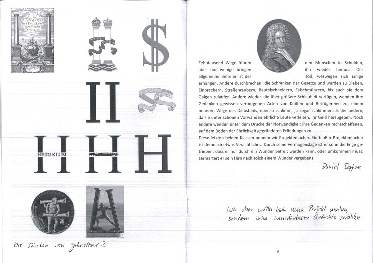 According to Daniel Defoe project making is (besides crime and suicide) the only possibility to save oneself from being in debts. Therefore you have to make a project that promises - and realizes - a wonder of such magnitude that all the financial problems are blown away by producing surplus value from nothing. If that is the debt spiral we are caught in, and if project making means creating something from nothing and thus strengthens self-exploitation - how can we still hope for a miracle that will show us a way out?